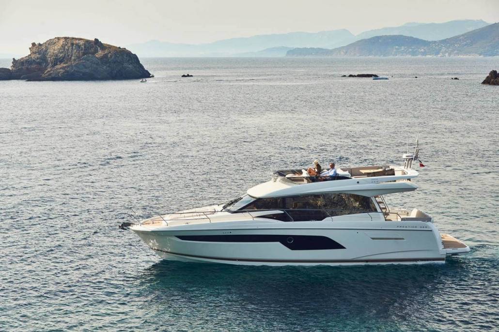 Le prestige 520 fly peut se louer à la semaine avec skipper (obligatoire) ou à la journée all inclusive : skipper, linge de bain, annexe electrique, paddle et 1 scooter sous-marin.